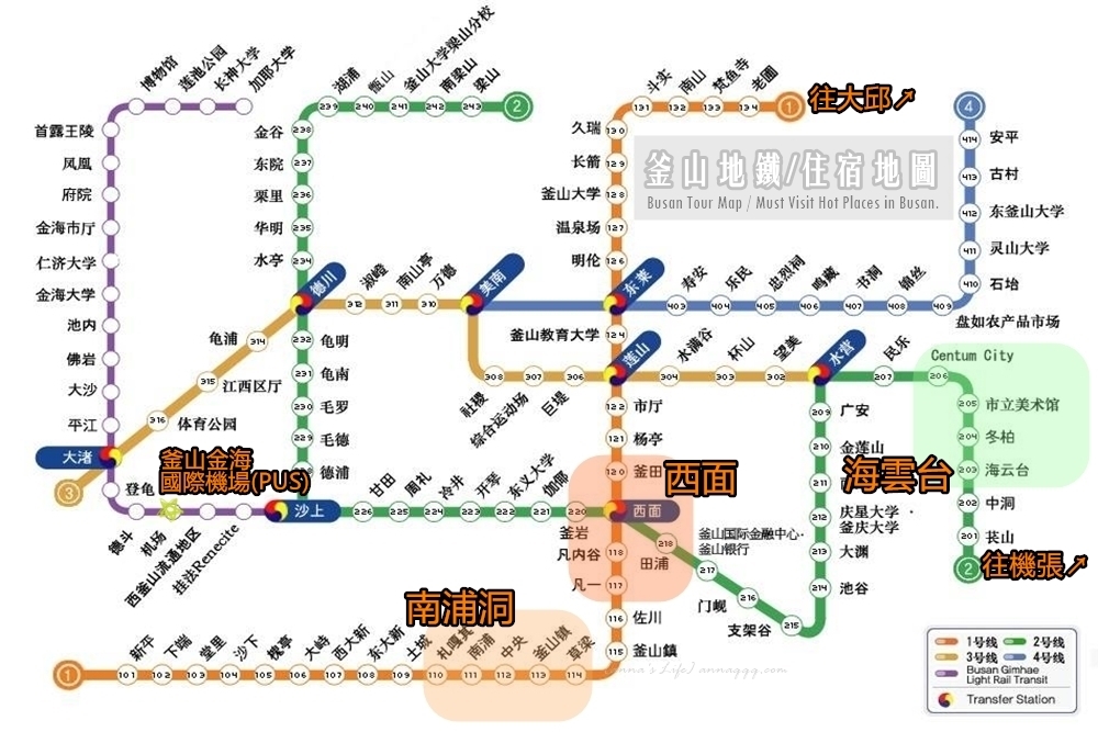 這一年較少飛韓國(沒有迷妹濾鏡、當然也曾被韓國人的Impolite&Bad Manners惹過只是懶得說而已),釜山地鐵路線圖重要幾站幾乎可說大腦已內建,雖然內容圖片是官網但文字絕對是鐵過腿的良心建議(沒用聳動標題/沒有團購/僅以微量廣告維持網站運作算有點職業道德吧……),一個國家從30玩到40歲也夠本了,世界那麼大我還想去其他地方看看!