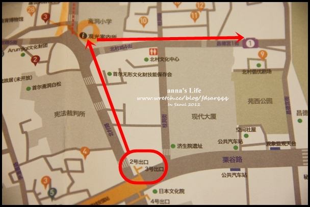 ↑如果是從地鐵安國站方向,一號出口直走看到栗谷路三街右轉,經過豐文女子高中、德成女子高中後會看到天橋旁邊有家便利商店,巷子就轉就是了