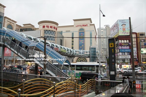 離釜山市區西面比較近的是釜山店,這是釜山樂天超市中最大的,不過位在地鐵釜岩站與西面站中間,步行約要6-8分鐘時間,當天因為下雨我們貪圖東萊店離捷運站比較近,而且可以順便去試試蔥煎餅之類的,所以就往明倫站出發!