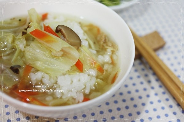 加個香菇、紅蘿蔔,簡單搖身一變就是可人的高麗菜粥了~