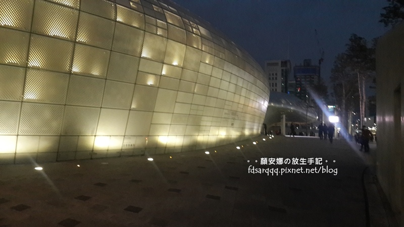 就在東大門幾間指標性購物中心對面的東大門設計廣場동대문 디자인플라자=Dongdaemun Design Plaza簡稱DDP,同時也有另一含意「Dream,Design,Play」。
