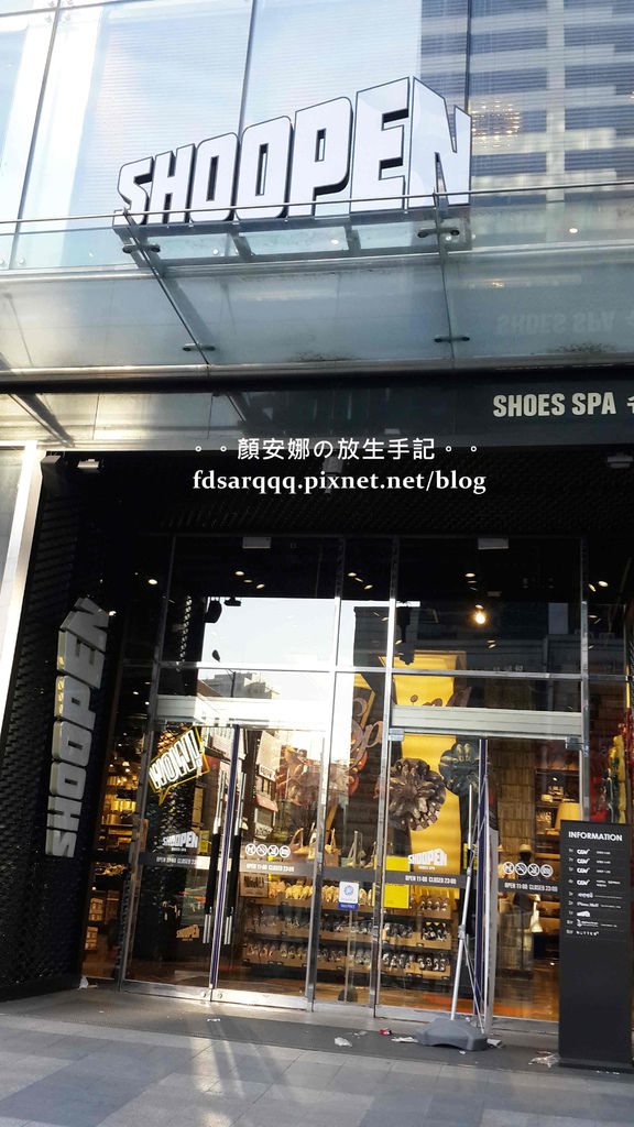 SHOOPEN是亞洲第一家以『鞋子SPA』作為品牌概念,以時尚、新潮、平價的作為指標。2014年10月弘大店開幕,一推出就大受好評! (這裡真的變化好劇烈,9月來時還是施工中,沒想到事隔一個月就盛大開幕了)