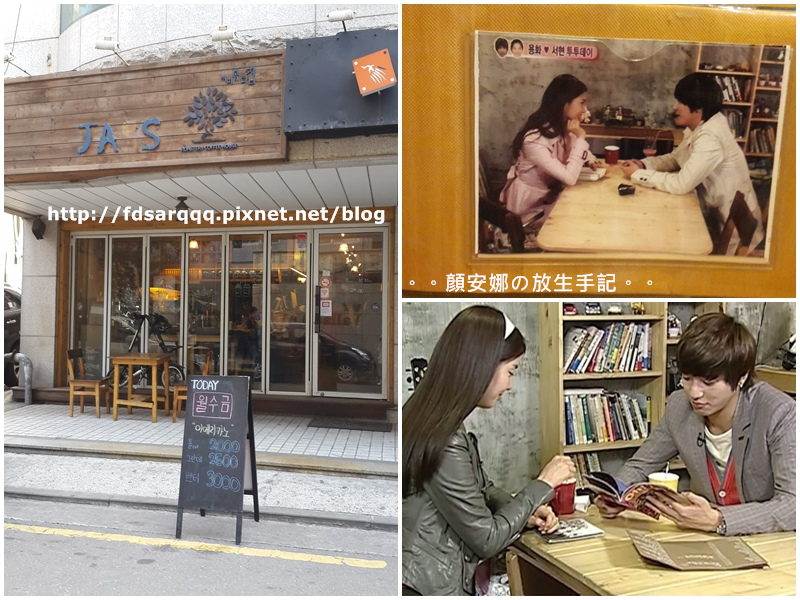 今天這次旅行的最後一天了,在弘大吃完了肉、也買完了包,原以為就回民宿扛行李往機場衝吧!(因為到機場還有很多事要忙→EX:Check in、退稅、寄明信片、之前還有韓服體驗…),親咕艾咪臨時加映說:帶你去家特別的咖啡廳坐坐!就在民宿附近,真的很近~