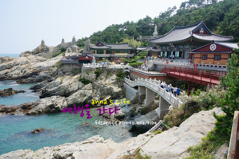經過了石階後看到豁然開朗的風景,背山面海,是韓國唯一座落於海邊的寺廟,景色果然很不錯~