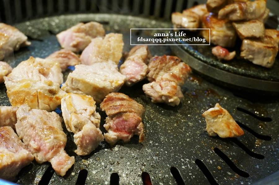 烤五花肉삼겹살和韓式烤肉불고기不太一樣,韓式烤肉是經過醃製的肉,烤五花肉是生五花肉直接烤(某些店家會有特製秘醬先醃過)。