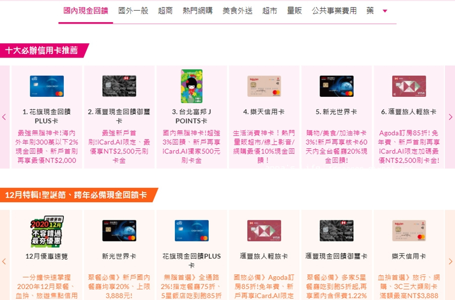 台灣目前比較有規模且即時的兩大信用卡比較平台應該是Money101、卡優新聞網吧。