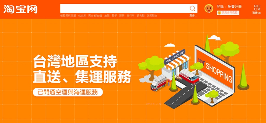●淘寶官網各店商品(免運)→私人集運(整合所有產品發貨/報關)→寄給台灣買家