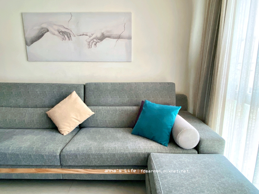最後選了意料之外的北美款,差別在於沙發下端加層木,覺得有畫龍點睛的FU~送兩個抱枕可混色!